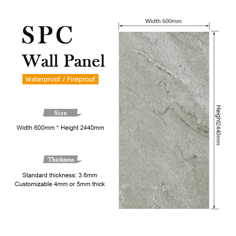 El panel de pared SPC es un producto duradero y de alta calidad que viene en un grosor de 4mm-8mm. Hecho de compuesto de plástico y piedra, está diseñado para ser ignífugo, aislante térmico y resistente a la humedad. Este producto es perfecto para aquellos que buscan una baldosa spc confiable o un panel de revestimiento de pared SPC que resista el paso del tiempo.