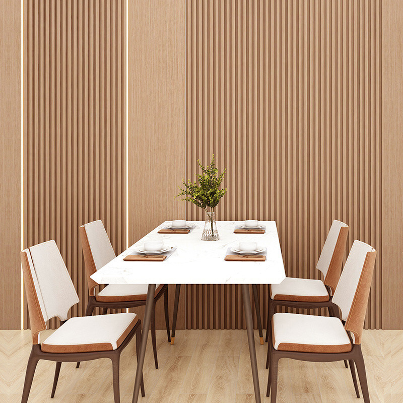 El panel de pared ranurado de madera maciza es un revestimiento de pared interior hecho de madera maciza, especialmente diseñado para la decoración de interiores. Las superficies de estos paneles tienen ranuras o canales que les dan un aspecto decorativo único. Los paneles están hechos de madera natural real, lo que le da un aspecto auténtico y lujoso. La madera maciza es conocida por su durabilidad y longevidad, lo que hace que estos paneles sean adecuados para entornos interiores. Los paneles son tratados o recubiertos para repeler el agua o la impermeabilidad. Esta característica asegura que la madera esté protegida de la humedad, haciendo que los paneles sean más duraderos y menos propensos a deformarse o dañarse por el agua. La madera utilizada en los paneles es tratada o naturalmente resistente a la descomposición. Esto los hace ideales para su uso en entornos con un alto riesgo de corrosión o en zonas costeras donde la exposición a la sal puede ser un problema. Los diseños de ranuras o canales en la cara de los paneles añaden un elemento decorativo a las paredes. Estas ranuras pueden variar en tamaño y patrón, proporcionando flexibilidad para crear diferentes estilos estéticos.