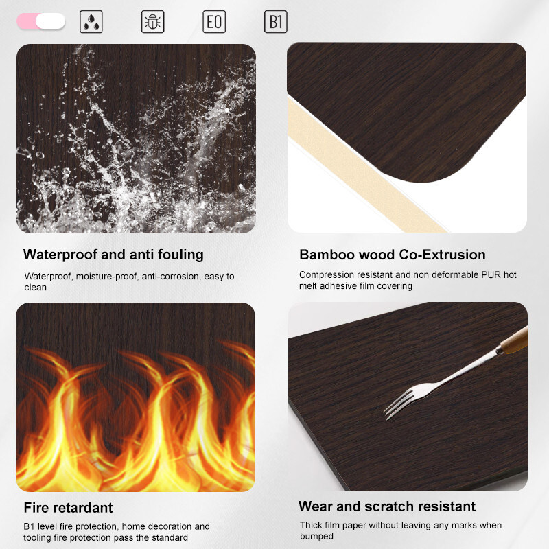 La chapa de madera de bambú de carbón es una chapa de madera de primera línea que es perfecta para cualquier aplicación interior.proporcionando una sensación natural y cálida a cualquier habitaciónLa hoja de madera también es resistente al agua, lo que la convierte en una opción ideal para baños, cocinas y cualquier otra área que tenga altos niveles de humedad.
