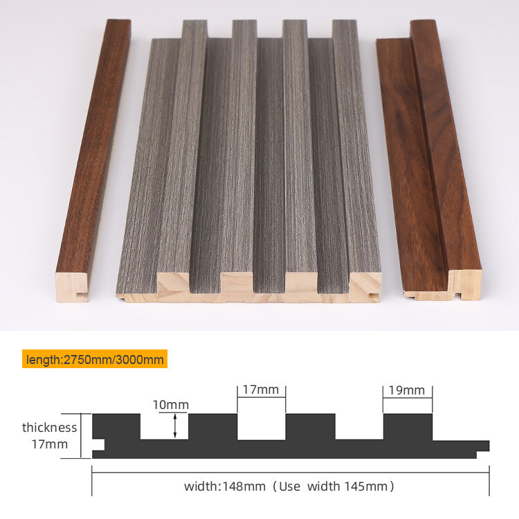 Los paneles de pared de PVC compuesto de WPC combinan elegancia, durabilidad y practicidad.rasguños y humedadDisfrute de un acabado que conserva su belleza prístina con el tiempo con un mantenimiento mínimo. El compuesto WPC garantiza protección contra la corrosión, los insectos y la deformación para una inversión duradera.Los paneles de pared tienen propiedades acústicas y térmicasLos paneles de pared de PVC compuestos de WPC ayudan a crear un entorno interior más cómodo y eficiente energéticamente.El uso de materiales reciclados en la construcción ayuda a reducir el impacto ambiental y contribuye a crear un planeta más verdeExplore los paneles de pared de PVC compuestos de WPC que abarcan la estética de la madera natural, la funcionalidad de los acabados de PVC y la sostenibilidad de los materiales ecológicos.Crear un equilibrio armonioso de elegancia y practicidad con paneles de pared de madera y plástico• Emplear soluciones duraderas que no solo mejoren la estética sino que también resistan la prueba del tiempo.