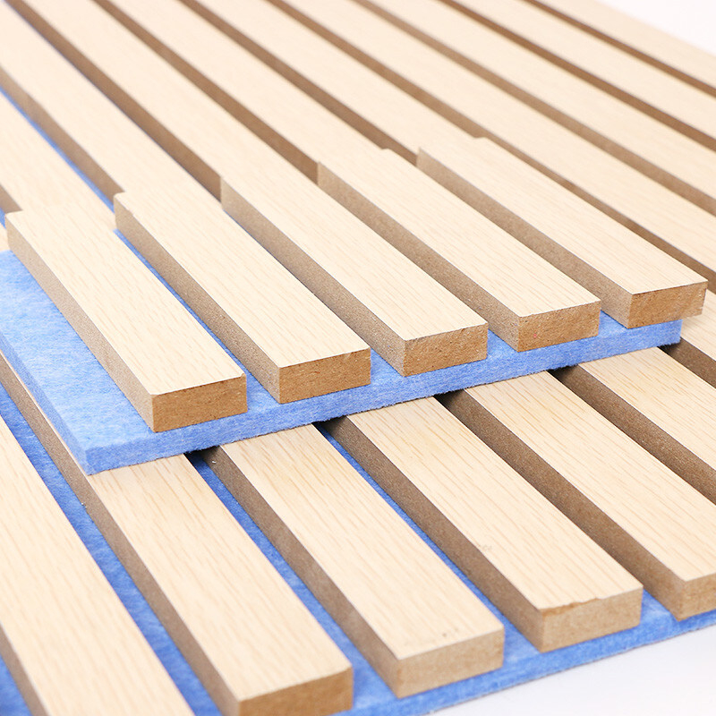 Los paneles acústicos de lamas de madera enrejada mejoran la estética del apartamento al tiempo que disfrutan de los beneficios de la absorción del sonido y la mejora de la acústica de la habitación. Los paneles acústicos están diseñados con lamas de madera refinadas para agregar un toque de belleza natural y calidez a las paredes del apartamento. Las lamas detalladas crean un efecto visual atractivo y mejoran el ambiente general del espacio habitable. El patrón de rejilla decorativa de los paneles acústicos agrega un toque de sofisticación al apartamento. La combinación de funcionalidad de absorción de sonido y atractivo decorativo los convierte en una solución muy solicitada para mejorar los interiores. El diseño de lamas ayuda a reducir las reflexiones y la reverberación del sonido para un entorno más silencioso y tranquilo. Al reducir las reflexiones del sonido, los paneles acústicos mejoran la acústica general del apartamento. Ayudan a equilibrar la distribución del sonido, lo que facilita escuchar y disfrutar de música, conversaciones y otros audios sin distracciones.