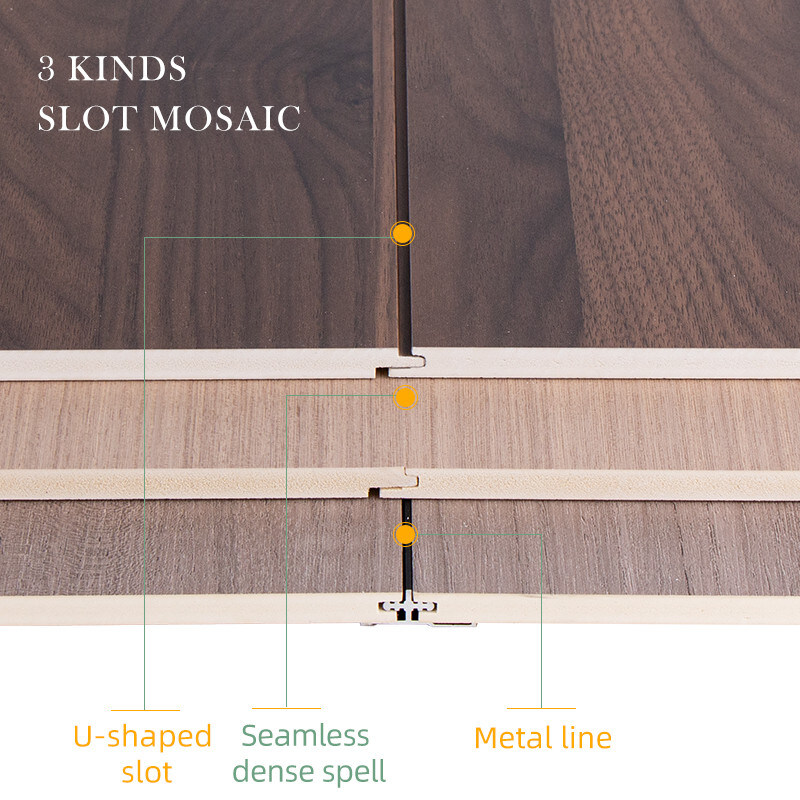 Paneles ranurados WPC resistentes al fuego y a la humedad con chapa de madera, Elegancia y protección en uno, Acabado de madera hecho de material compuesto de madera y plástico (WPC), Disfrute de los beneficios adicionales de la resistencia al fuego y a la humedad, para una solución interior atractiva y segura. El revestimiento de chapa de madera replica la belleza natural de la madera. Las texturas y patrones intrincados añaden profundidad y carácter, elevando la estética de los espacios con un toque de calidez y sofisticación. Los paneles ranurados WPC con chapa de madera están diseñados para la seguridad, la resistencia al fuego y al calor. Las propiedades inherentes del material brindan una protección confiable contra los riesgos de incendio y garantizan la protección de los espacios interiores. Los paneles de pared WPC están diseñados para resistir la humedad y son resistentes a la humedad y al moho. Son efectivos para la impermeabilización, previniendo el crecimiento de moho y asegurando la longevidad de las paredes. Construidos para la durabilidad y el rendimiento duradero. El diseño ranurado agrega un toque moderno sin dejar de ser funcional.